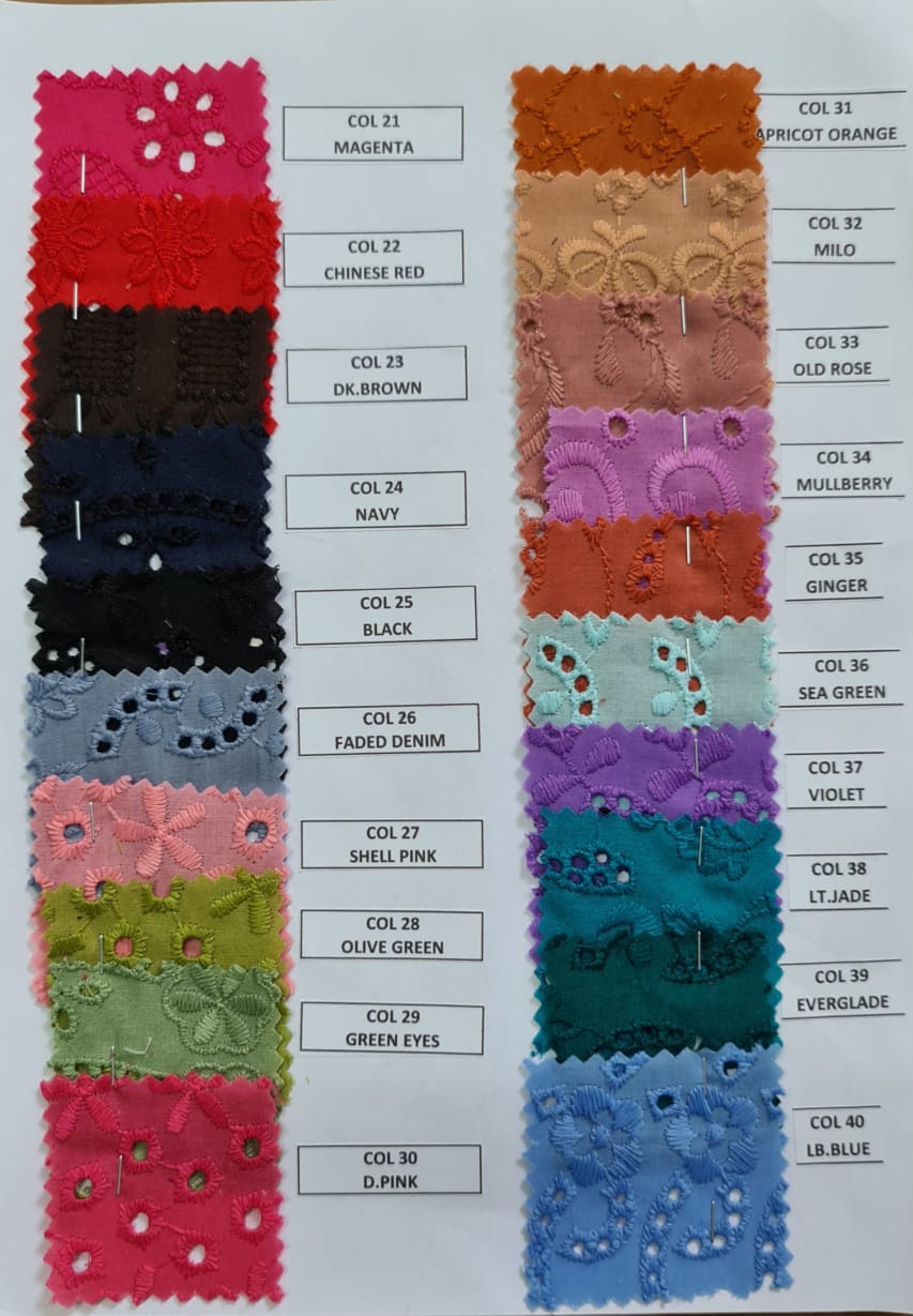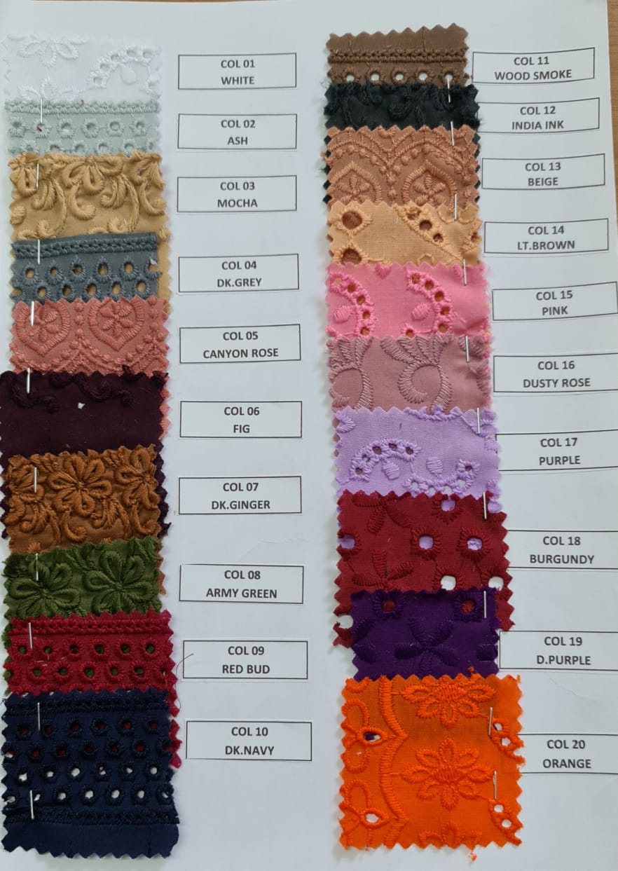 Portfolio by | Sep 24, 2025 All Colour Names And Range Available Cotton Embroidery One Side Allover Tc With Embroidery Dull Yarn One Side Border Cotton Allover Tc Embroidery With Dull Yarn Tc Poly Cotton Embroidery With Shiny Yarn Trimming , Galloon Stripe Designs Two Side Border Allover Colour Names And Range Available 3 2 Colour Names And Range Available 1
